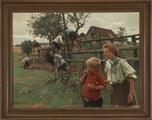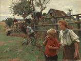 “Æbletyve”. Apple thieves. Signed and dated Erik Henningsen 1909. Oil on canvas. 63.5×84 cm.