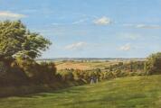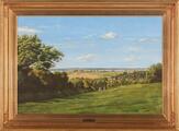 Summer landscape with a mother and her child walking in the fields. Signed with monogram. Oil on canvas. 40×58 cm.