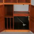 Brugsslitage, herunder ridser og mærker. Bagklædninger med borede huller. Ene skab med større hul i bagklædning. Indvendigt monteret med uoriginale, beslag, skuffer, ledninger og stikdåse.