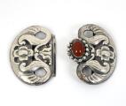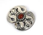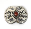 A belt buckle set with a cabochon carneol, mounted in silver. Weight app. 35 g. W. 6.6 cm. L. 8 cm.