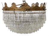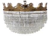 Prismekrone af forgyldt bronze, behængt med prismer, indvendig elektrisk belysning. Empire form, 19. årh.s slutning. H. 43. Diam. 55.