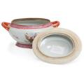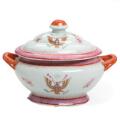 Chinese porcelain tureen, decorated in colour and gold with coats of arms and scattered flowers in the famille rose manner. 20th century. H. 29 cm. L. incl. handles 39 cm.