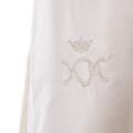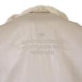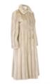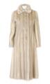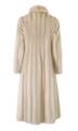 Hvid lang pelsjakke af mink med knapper på front og to lommer. Længde ca. 122 cm, brystmål 92 cm og ærmelængde 56 cm. Str. ca. 40.