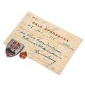 Norge, medlemsmærke for partiet “Nasjonal Sammling” lille smykke m. øsken, møde- og stævnemækre fra Hirdmønstringen 1941, samt check fra Oslo Sparebank på NOK 2800,- udskrevet til Astrid Hauge Isachsen underskrevet af Quisling