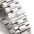 Herrearmbåndsur af stål. Model Nautilus, ref. 5711/1A-001. Mekanisk værk med automatisk optræk og dato visning, kaliber 324 S C. Blå skive med hvidgulds indeks og visere. Patek Philippe lænke af stål med foldespænde. Omkreds 22 cm. Urets diameter 40 mm. 2009.