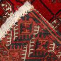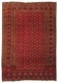 Bochara tæppe, Turkmeinien. Klassisk gentagelsesdesign med güls på rød bund. Ca. 1950–1960. 217×310.