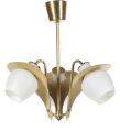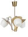 A 1960's brass ceiling lamp with yellow painted and opal glass shades. Manufactured by Lyfa. H. 46. Diam. 45 cm.