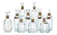 Samling af 10 karafler af glas med montering af hhv. sølv og sterlingsølv. Diverse mestre. H. 21–31 cm. (10)