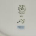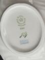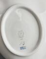 Almindelig brugspatina, herunder overfladeridser og mærker. En middagstallerken samt asiet med minimalt kantafslag.