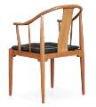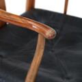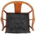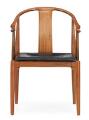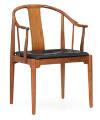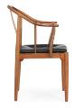 “China chair”. A walnut armchair. Loose seat cushion upholstered with black leather, fitted with buttons. Model 4283. Designed 1944. Manufactured 1977 by Fritz Hansen, with maker's silver plaque in back.
