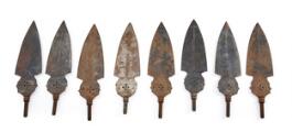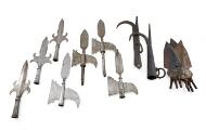 A collection of 17 blades for pole arms consisting of four blades for halberds for non-commissioned officers around 1720 - the two with short rails (one marked M R L C, one marked M L R G, one marked L N and one possibly a copy?) three blades for espontoons M/1769 (one marked O R. 1. G. 9 on the socket, one marked I R L H on the blade), eight copies of esponton blades and two brand hooks.