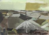 Marklandskab. Signeret SE. Olie på masonit. 38×54,5 cm.