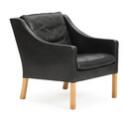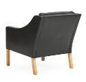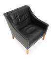 Easy chair with oak legs. Seat, sides and back upholstered with black leather. Model 2207. Designed 1963. Manufactured and marked by Fredericia Stolefabrik, 1985.