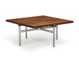 A rosewood coffeetable with stel base. Manufactured by Søren Willadsen. 1970s. H. 35. W. 75. L. 75 cm.