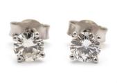 A pair of solitaire diamond ear studs each set with brilliant-cut diamond weighing a total of app. 1.20 ct, mounted in 18k white gold. Colour: F-G. Clarity: VS-SI. Weight in total app. 1 g. Diam. 5 mm. (2)