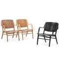 “AX”. Three beech armchairs with moulded teak seats, backs and inlays. One chair later black-lacqeured. Model 6000. Designed 1947. Manufactured by Fritz Hansen. (3)
