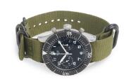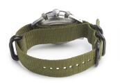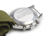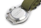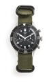 “Luftforsvaret” af stål, ref. 1550 SG. Mekanisk flyback-kronografværk med manuelt optræk, kaliber Valjoux 230. 1972. Grøn nato-rem. Ø 42 mm.