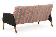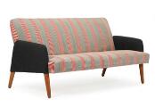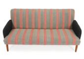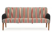 2,5 personers sofa med ben af eg, betrukket med stribet og gråt uld. Udført hos Frem Røjle. 1950'erne. L. 165 cm.