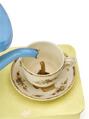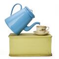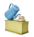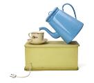 A motorized coffee machine making water/coffee flow out of the coffeepot constantly. H. 60 cm