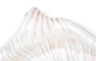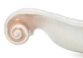 “Rosa Konkylie”. Stort serveringsfad af porcelæn. Dekoreret med lys rosa glasur. Tryksign. monogram, 14177. Kgl. P. B. 41. L. 51,5.