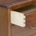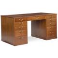 Freestanding mahogany desk. Front with five drawers on each side and one in the middle of the rail. Made by cabinetmaker A.J. Iversen. H. 76 cm. L. 148.5 cm. W. 77.5 cm.
