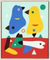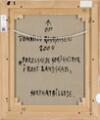 “Forelskede sorthatdyr i rødt landskab”, 2004. Signeret med titel og datering på bagsiden. Olie på lærred. 61×50 cm.
