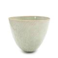 “Græssets poesi”. Bordskål af stentøj modelleret med mønster i let relief og dekoreret med grønlig glasur. Signeret Tove Anderberg. Unik. H. 16. Diam. 19,5 cm.
