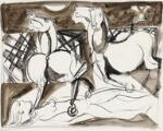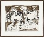 Uden titel. Signeret Cassinari. Akvarel, oliekridt og blyant med lavering på papir. Lysmål 45 × 56 cm.