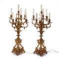 A pair of large Napoleon III gilt bronze seven light candelabra mounted for eletricity. France, late 19th century. Without lights H. 74 cm. (2)