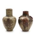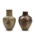 To vaser af stentøj, modelleret med motiv i relief, dekoreret med Sung glasur og lysbrun glasur. Sign. Jais. Nr. 20248 og 20247. Royal Copenhagen. H. 21 og 22,5. (2)
