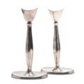 A pair of silver candlesticks on oval bases. Mid-20th century. Filled. H. 18.5 cm. (2)