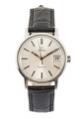 Genève af stål, ref. 136.0098. Mekanisk værk med manuelt optræk og datovisning, kaliber 613. 1972. Læderrem med spænde af stål. Ø 35 mm.
