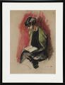 Woman reading. Signed v.b-p-28. Probably made during his time at the National Academy of Fine Arts in Oslo (1927–29). Coloured crayon on paper. Visible size 40×29 cm.
