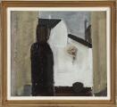 Composition with figure. Signed JH. Oil on masonite. 28×30 cm.