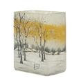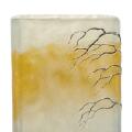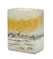 Rektangulær vase af gråt og gult glas. Overfang udskåret og bemalet med vinter landskab. Sign. Daum Nancy. H. 12. B. 9,7. D. 6,3.