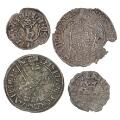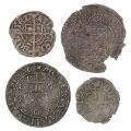 Christian II, skilling u. år, G 39B; Christian III, København, 2 skilling 1536, G 105; Christian I, Malmø, hvid, G 23; Hans, Aalborg, hvid, G 36. (4)