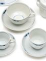 “Gemina". Stel af porcelæn dekoreret med mønstre i gråblå samt transparent glasur. Stempelsign. monogram for Gertrud Vasegaard. Kgl. P. (96)