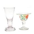 Goblet with nick to food. Sugar dish with wear to rim. Wear due to age and use.