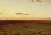 View of meadow and dunes in the evening sun. Signed M. A. Oil on canvas laid on cardboard. 23.5×34 cm.