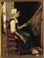 “Fiskerpige sætter garn”. Sign. L. T. 1878. 35×26.
