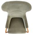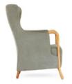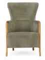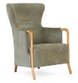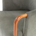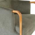 “Progetti”. Lænestol med stel af valnøddetræ og bøg. Betrukket med grøn velour. Udført hos Giorgetti, Italien.