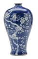 A Chinese blue and white meiping vase decorated with 'prunus on breaking ice'. 20th century, H. 42 cm.