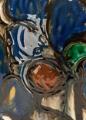 Side med større glasurafslag samt enkelte små glasurafslag. Fodrand med et større samt små glasurafslag.