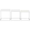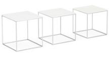 “PK 71”. Et sæt på tre indskudsborde med kubeformet stel af stål. Top af hvid akryl. Formgivet 1957. Udført hos Fritz Hansen, 2014. H. 28,5/27/25,5. L./B. 28,5/27/25,5. (3)