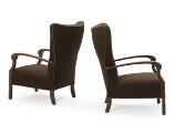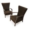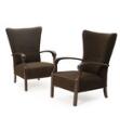 A pair of easychairs with stained beech frames, upholstered with brownish fabric. 1940s. (2)