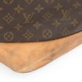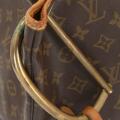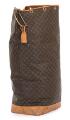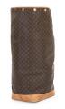 Vintage “Sac Marin Duffle Bag” af brunt monogram kanvas med brune læderbestæninger, gyldne beslag, kort hank og et stort åbent rum med brunt stof for. Navneskilt medfølger. H. 1989.