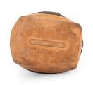 Fremstår med synlige tegn på alders- og brugsslitage. Tydelig slitage, samt mange ridser og mærker på læderbestninger. Manglende snor til lukning. Uoriginal hængelås med ukendt kode. Alle mål er cirkamål.
