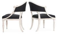 Et par svenske sengustavianske armstole af hvidmalet træ. Stockholm, ca. 1800. (2)