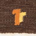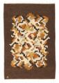 “Korall”. Handwoven wool carpet in “rölakan” flatweave technique. Decor in shades of orange, brown, yellow and grey on brown base. Signed monogram. Made by Vävaregården, Sweden. Second half of 20th century. L. 245.5 cm. W. 167 cm.