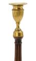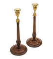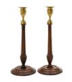 A pair of George III candlesticks of mahogany and gilt brass, fluted stems, arched round bases. England, late 18th century. H. 38. Diam. 15. (2)